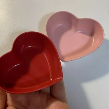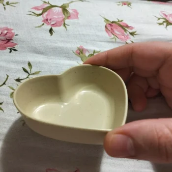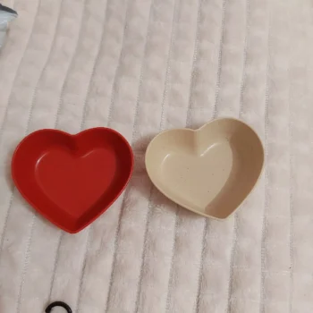 Heart-Shaped Wheat Straw Plastic Seasoning Dish